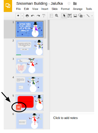 The first thing that students need to do when they find their slide is to type their name on the slide immediately. Once the student types their name, they know that they are now working on the slide with their name on it, and the slide number no longer matters. This is important when slides are accidentally deleted and the slide numbers change.